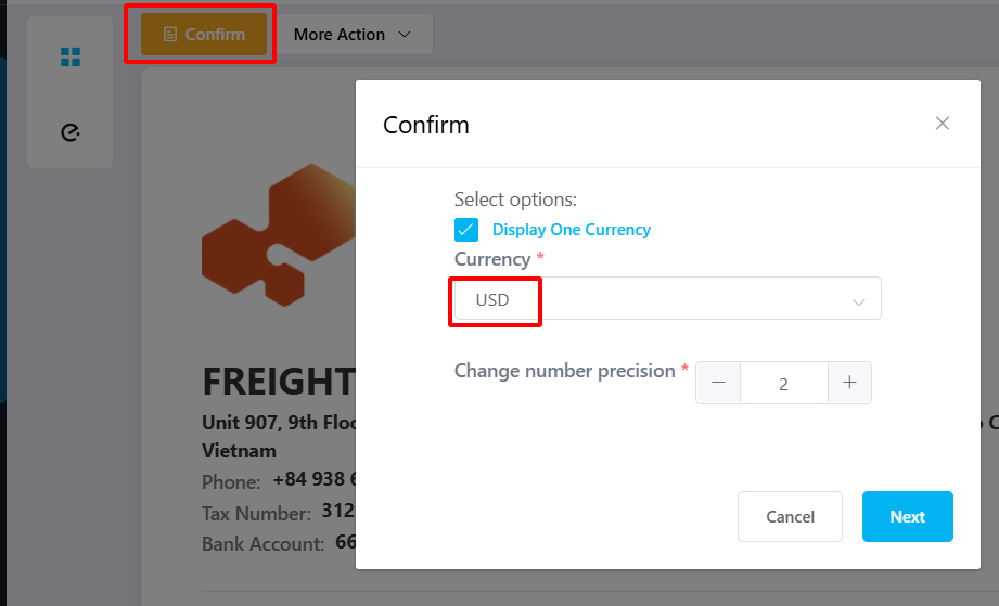 - Display One Currency: hiển thị chỉ một loại tiền tệ trên hóa đơn.