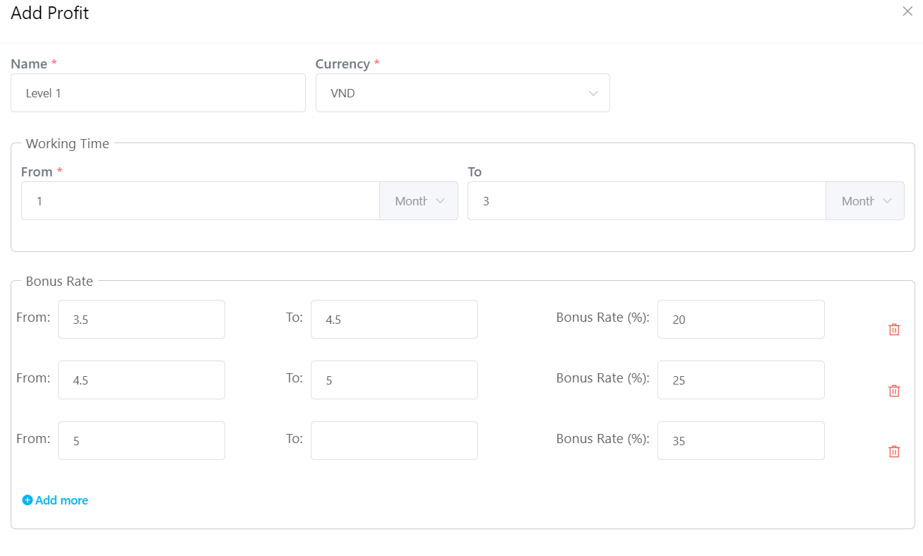 Bonus Based On Profit Range: Tính thưởng dựa theo mức Lợi nhuận đã đạt được