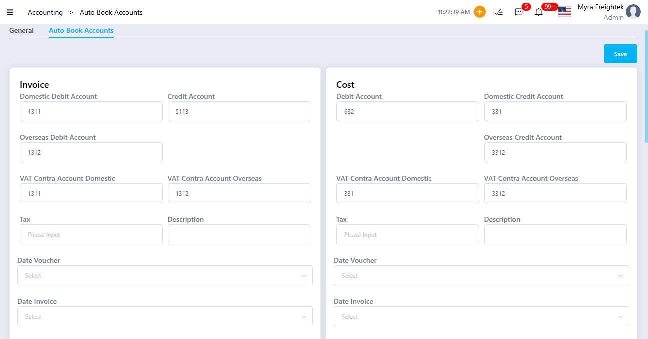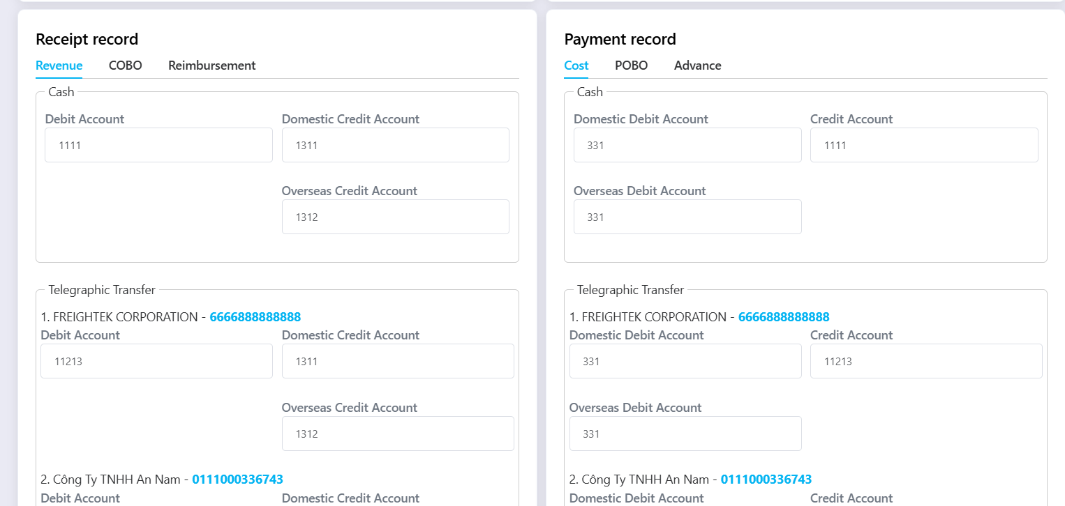 Sau khi Connect Freightek và Easybook người dùng mới tiến hành cài đặt Tài khoản hạch toán được vì TK hạch toán được link từ Easybook.