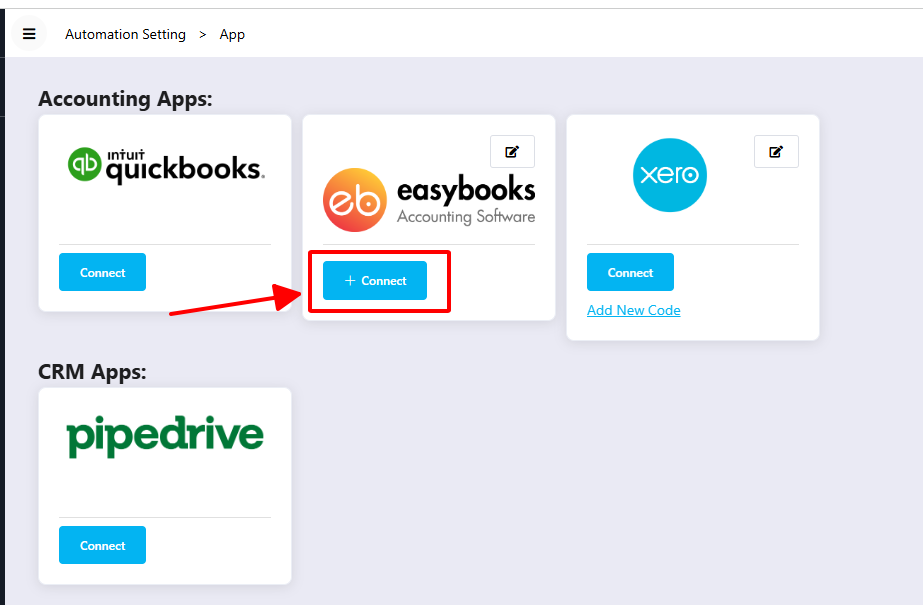 Bước 1: Vào Automation Setting -> App -> chọn nút CONNECT
